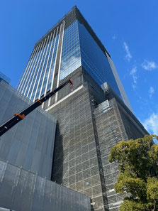 現場はJR関内駅前に建設中の大規模ミクストユースプロジェクトのメインとなる建物で、道行く方が皆一様に建設中の建物を見上げている様子から、当現場の注目度の高さが伺えました。